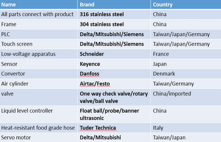 3. Vsi sestavni deli, ki pridejo v stik z izdelkom, so izdelani iz uvoženega nerjavečega jekla 316 L in obdelani s CNC stroji.